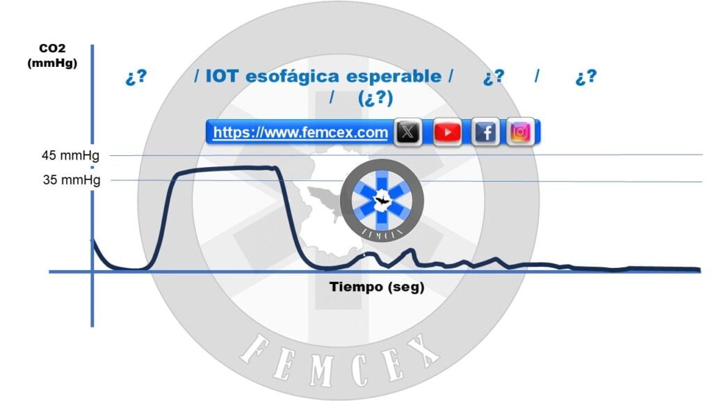 ¡Si hubieras ido atent@, hubieras visto una caída del etCO2 precoz por hipoxemia derivada de la no ventilación por salida del tubo a nivel esofágico!.